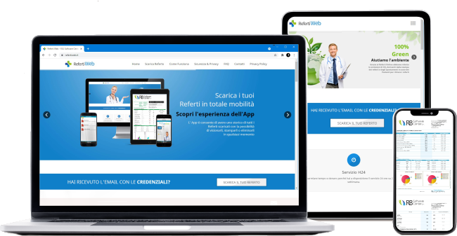 Referti Online è un App gratuita per dispositivi AndroidTM e iOS® che consente la fruizione dei referti clinici direttamente dallo Smartphone. Inoltre grazie all'ausilio della tecnologia QR code, viene velocizzata la procedura di inserimento delle credenziali e quindi l'accesso al proprio referto. E' possibile tra l'altro usare il proprio smartphone come archivio clinico dei propri referti o conservarli direttamente su Google Drive o iBooks.